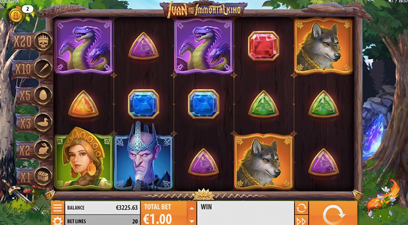 Quickspin created this story using kings from Ivan’s country. The game offers twenty lines, five reels, free spins, wilds, a bonus game, 20x multipliers, progressive scatters and a £4,000,000 jackpot. The wagers range from £0.20 to £100. The right combination of wilds results in a 2,000 coin win. The Chest icon provides a minimum of ten free spins. The best rewards are available at higher levels with a 20x multiplier. The Baba Yaga is a random bonus providing either guaranteed winning combinations or bonus scatters. The symbols include King Koschey and Ivan Tsarevich, wolves, the queen dragons and multiple gems.