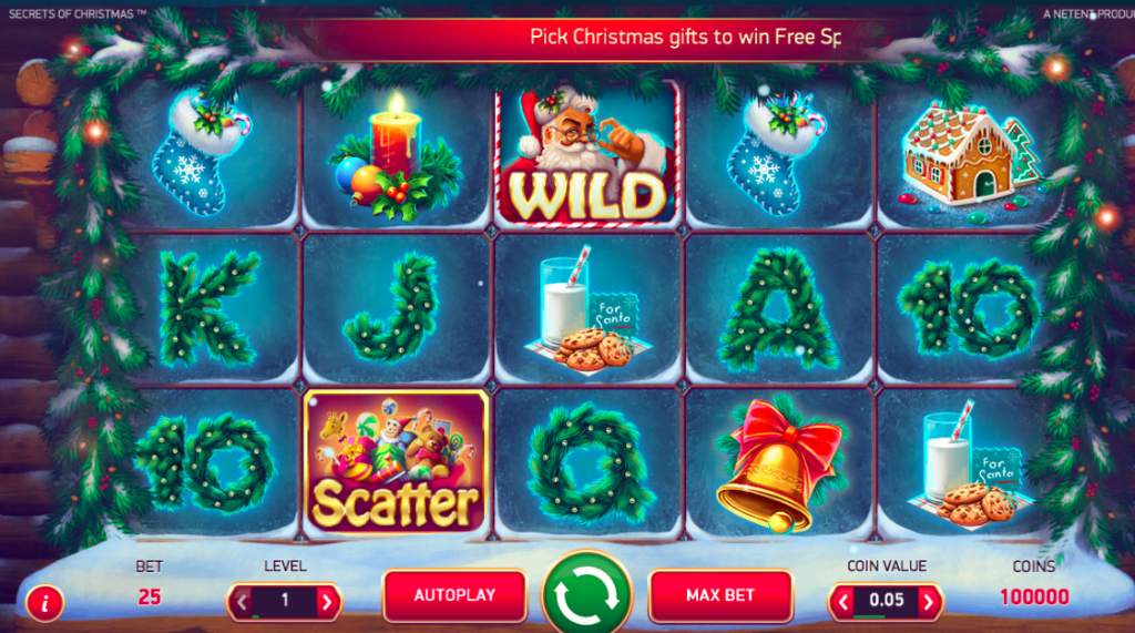 Santa is featured as the Wild Card in the next video slots game, going by the name of Secrets of Christmas by NetEnt. This video slots game can be played for real cash money or it can also be played using the free option for tokens. It has very cheery graphics and is incredibly detailed in its portrayals of all of the usual Christmastime trappings.