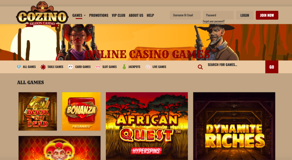 Cozino Casino has a unique appearance with a western theme from the background images to the wording of the content on each page of the site. The homepage in the western theme is easy to maneuver with the more than 500 games found in categories. The top of the homepage has the important pages customers look for listing games, promotions, VIP Club, about us, and help. The FAQ page is easy to find that will answer common questions and to contact customer service for fast answers. The live casino is found with the game selections category on the homepage.